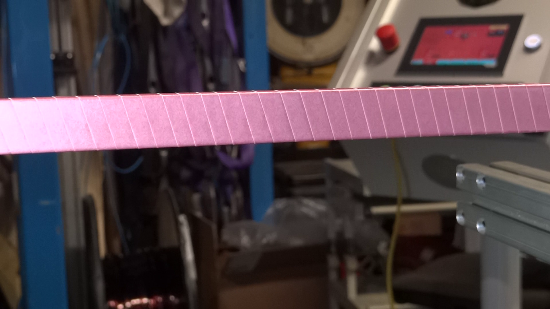 Zudem ist die HBK 40 auch unabhängig von der Wickelgeschwindigkeit der nachfolgenden Maschine. Über einen hochauflösenden Drehgeber wird die Drahtgeschwindigkeit erfasst, an die Bandagiermaschine weitergeleitet und die Geschwindigkeit des Bandagierkopfes geregelt. Dadurch wird die Bandüberlappung konstant gehalten und ist somit unabhängig von der Wickelgeschwindigkeit.