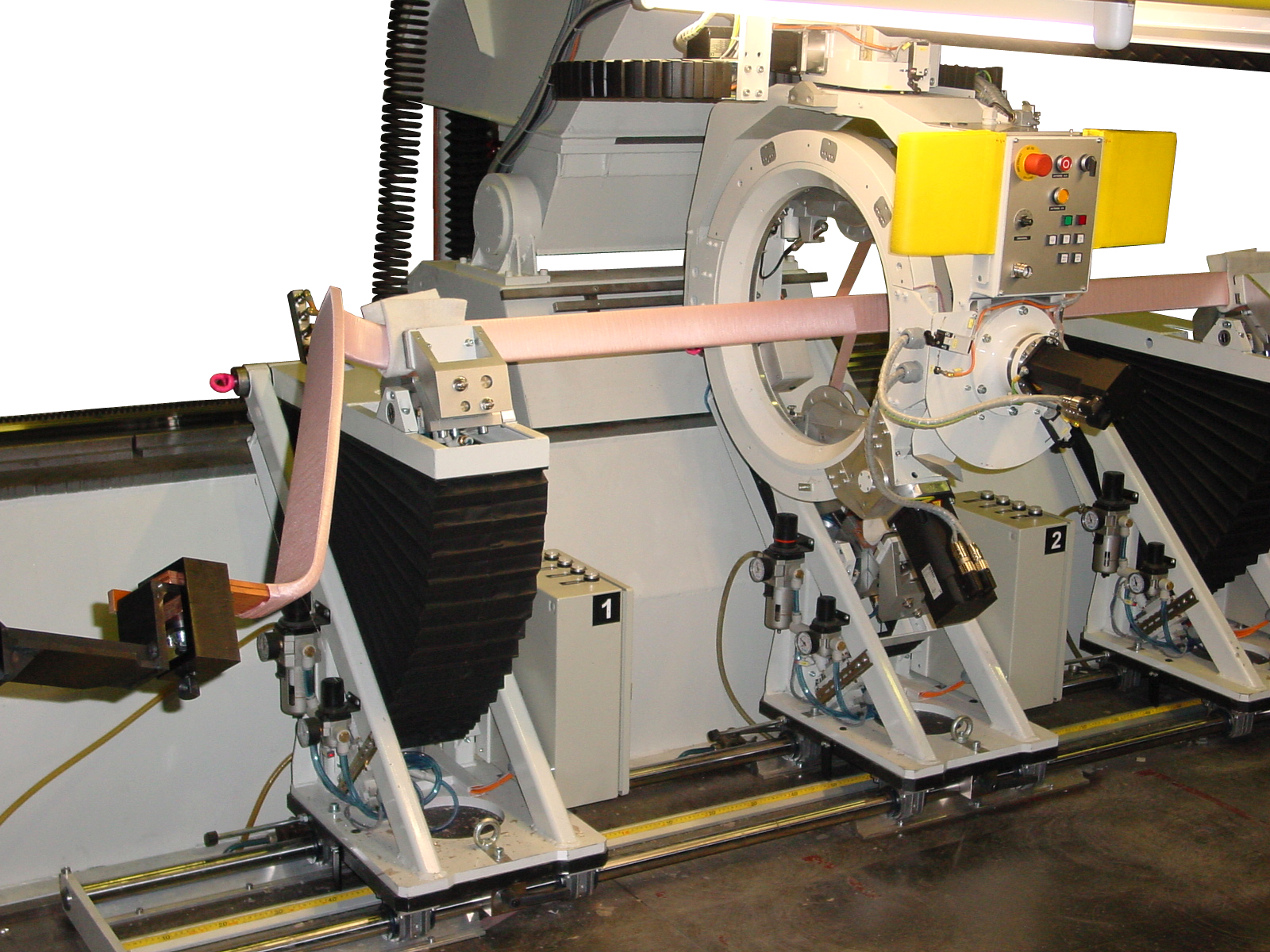 Die Bandabläufe verfügen über ein elektronisches verschleißfreies Bremssystem, das einen kontinuierlichen Bandzug gewährleistet. Die Bandüberlappung ist stufenlos einstellbar.