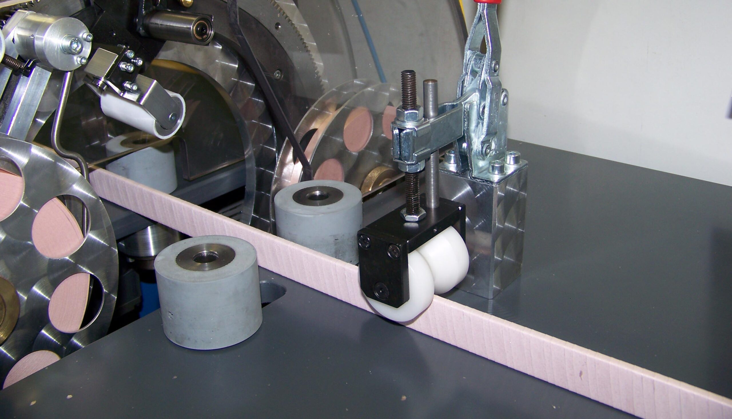Der Stab läuft mittels zweier Stützwalzen automatisch die programmierten Bandagierrichtungen ab. Der Antrieb des Bandagierkopfes erfolgt über einen Drehstrommotor.