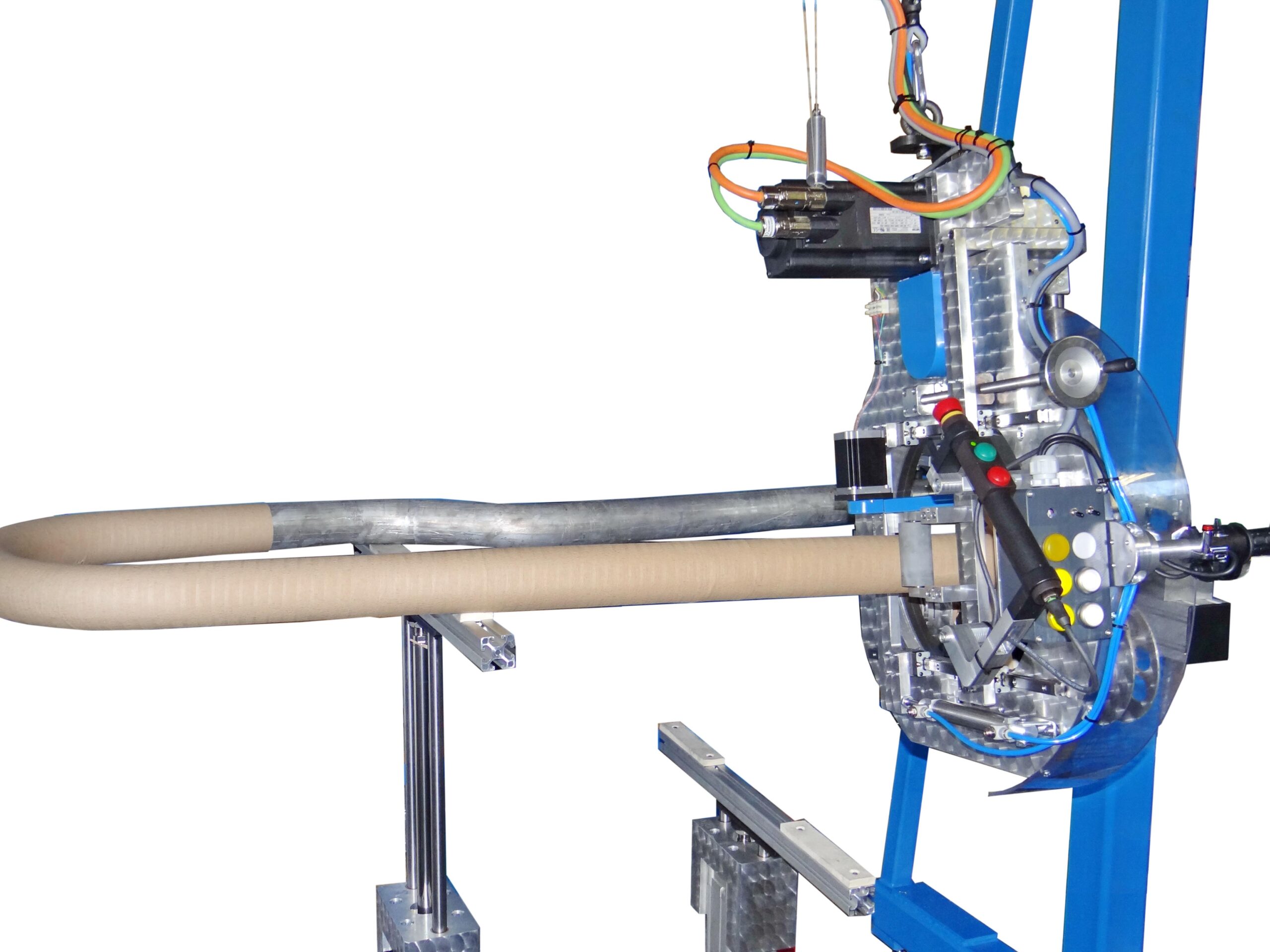 Durch ein neues verstärktes Führungssystem können auch größere Wickelquerschnitte mittels Handführung bewickelt werden. Es kann mit bis zu 3 Bändern gleichzeitig gewickelt werden.