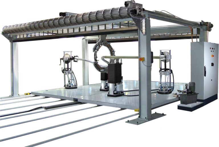 Als innovative Weiterentwicklung ist die Bandagieranlage SDBA 4500 mit einer verfahrbaren Arbeitsbühne „Plateau“ und zwei getrennten Arbeitsbereichen ausgestattet. Diese auf Schienen gelagerte Bühne kann hydraulisch von links nach rechts bzw. umgekehrt versetzt werden, um die zwei jeweils notwendigen Arbeitsflächen der Anlage zu bilden – den Wickel- und Bestückungsbereich. Dadurch kann gleichzeitig im Wickelbereich bandagiert werden, während im Bestückungsbereich das fertige Wickelgut entnommen und ein neues zum Bandagieren vorbereitet wird. Der Vorteil besteht in einer höheren Arbeitsproduktivität. Der eigentliche Wickelvorgang erfolgt vollautomatisch durch einen über das Wickelgut (Rohr od. Stab) rotierenden Wickelkranz, der mittels drei (auf Kundenwunsch auch erweiterbar) NC-gesteuerter Servoantriebe horizontal und konturgetreu verfahren wird. Primäre Bedien- und Beobachtungsfunktionen (Ein-/ Ausschaltung, Türöffnung, Störmeldung etc.) erfolgen am Schaltschrank. Alle sonstigen Bedien- und Beobachtungsfunktionen sowie das Teachen und Einprogrammieren der auf das Wickelgut zugeschnittenen NC-Programmabläufe erfolgen über ein tragbares Mobilpanel. Sämtliche zuvor einprogrammierten Programmabläufe können an der Bedienkonsole jederzeit zwecks Wiederholung von exakt gleichem Rohrtyp abgerufen werden.