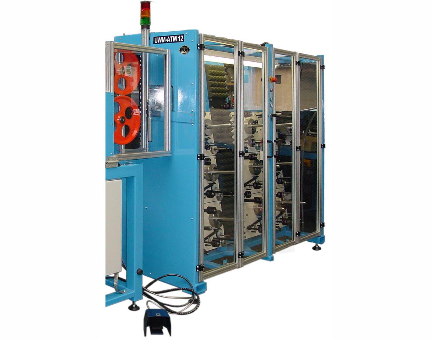 Die Abläufe ATM 8-12-16 sind Mehrfachablaufgestelle mit bis zu 16, als kompakte Baugruppe ausgeführten Einzelablaufstellen. Jede Ablaufeinheit arbeitet als getrenntes System. Somit können bis zu 16 Einzeldrähte zu einem Fach zusammengefasst und umgespult werden (Anzahl der Einzeldrähte des Faches beliebig).