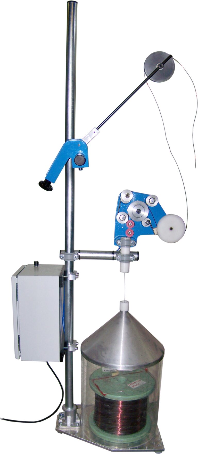 Eine konstante Drahtabzugskraft wird über ein federbelastetes Tänzersystem und ein elektronisch geregeltes Bremssystem realisiert. Als Regelbremse wird eine Hysteresebremse