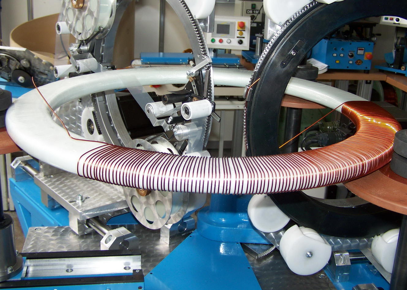 Die“ DBW-Maschinenreihe“ wurde für die Herstellung von Stromwandler, Ringkerntransformatoren sowie anderen mehrlagigen Wickelgütern mit sogenannten großen Restlöchern entwickelt.Diese Baureihe gestattet es sowohl mit einem Wickelkopf, als auch in Kombination mit zwei Wickelköpfen zu arbeiten.Hierbei können in einer „Aufspannung“ auch sehr schwere Wickelkörper bearbeitet werden.Die Anlagen sind mit SPS-Steuerung ausgerüstet und somit können sehr viele Programmvariationen abgespeichert werden.Hauptanwendungsfeld ist in der Ringkerntransformatorenfertigung.