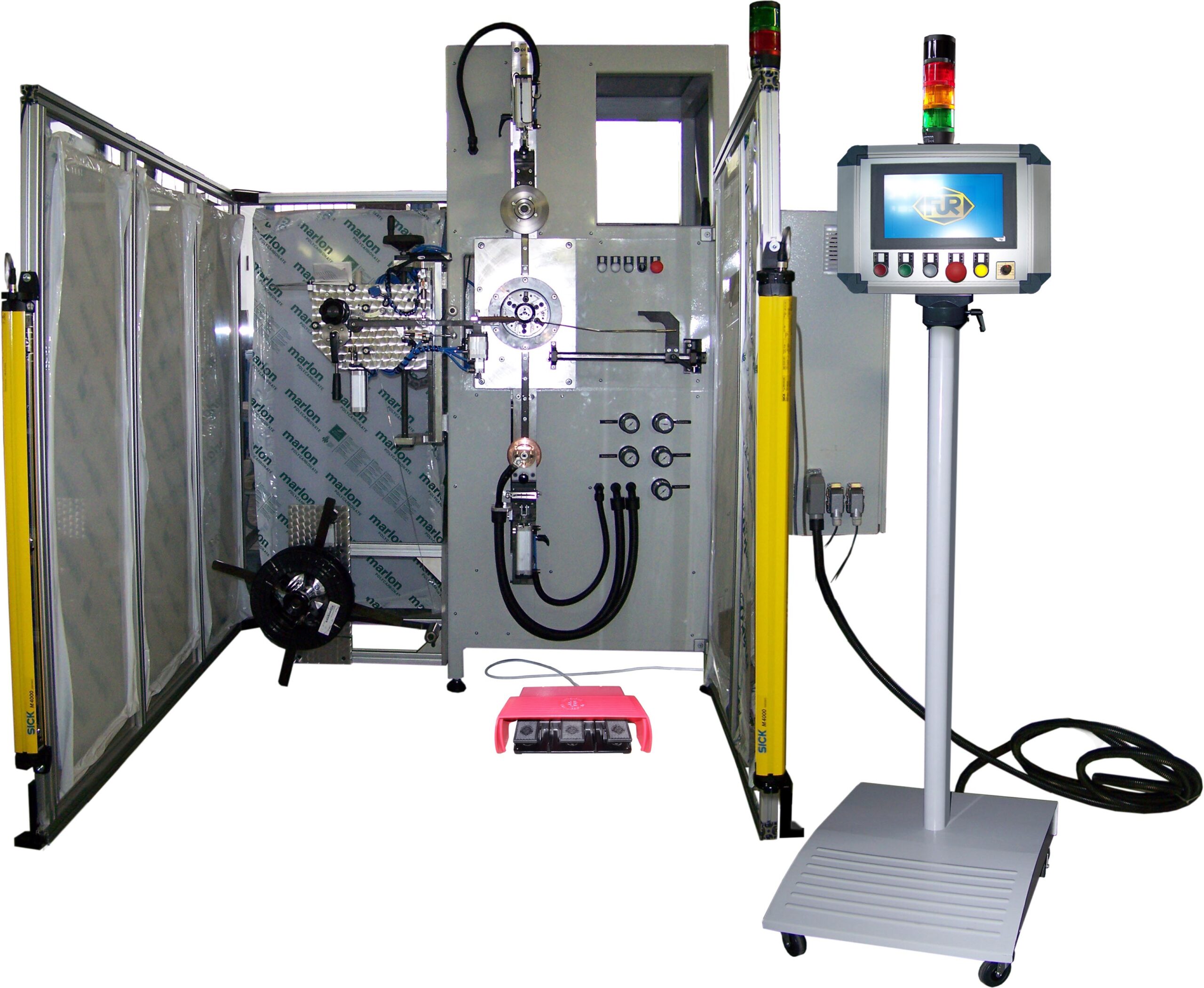 Die Metalldichtungswickelmaschine Typ MDW-40 ist zur Herstellung der Metalldichtungen sowohl mit Stahlkern als auch von kernlosen Dichtungen aus profilierten Stahlbändern mit oder ohne Graphitzwischenlagen konzipiert. Die Maschine arbeitet, ausgenommen die Bestückung, voll automatisch und besitzt eine SPS. Durch die elektronische Drehzahlregelung kann die Wickelgeschwindigkeit stufenlos und somit optimal den Arbeitsbedingungen angepasst werden. Sämtliche Wickelparameter (Wickeldrehzahl, Windungszahl sowie Spulenparameter werden über eine Touchscreen-Display Bedienerführung eingegeben. Der Wickelprozess erfolgt automatisch in Abarbeitung des jeweils abgespeicherten und angewählten Programms (50 Programme möglich).