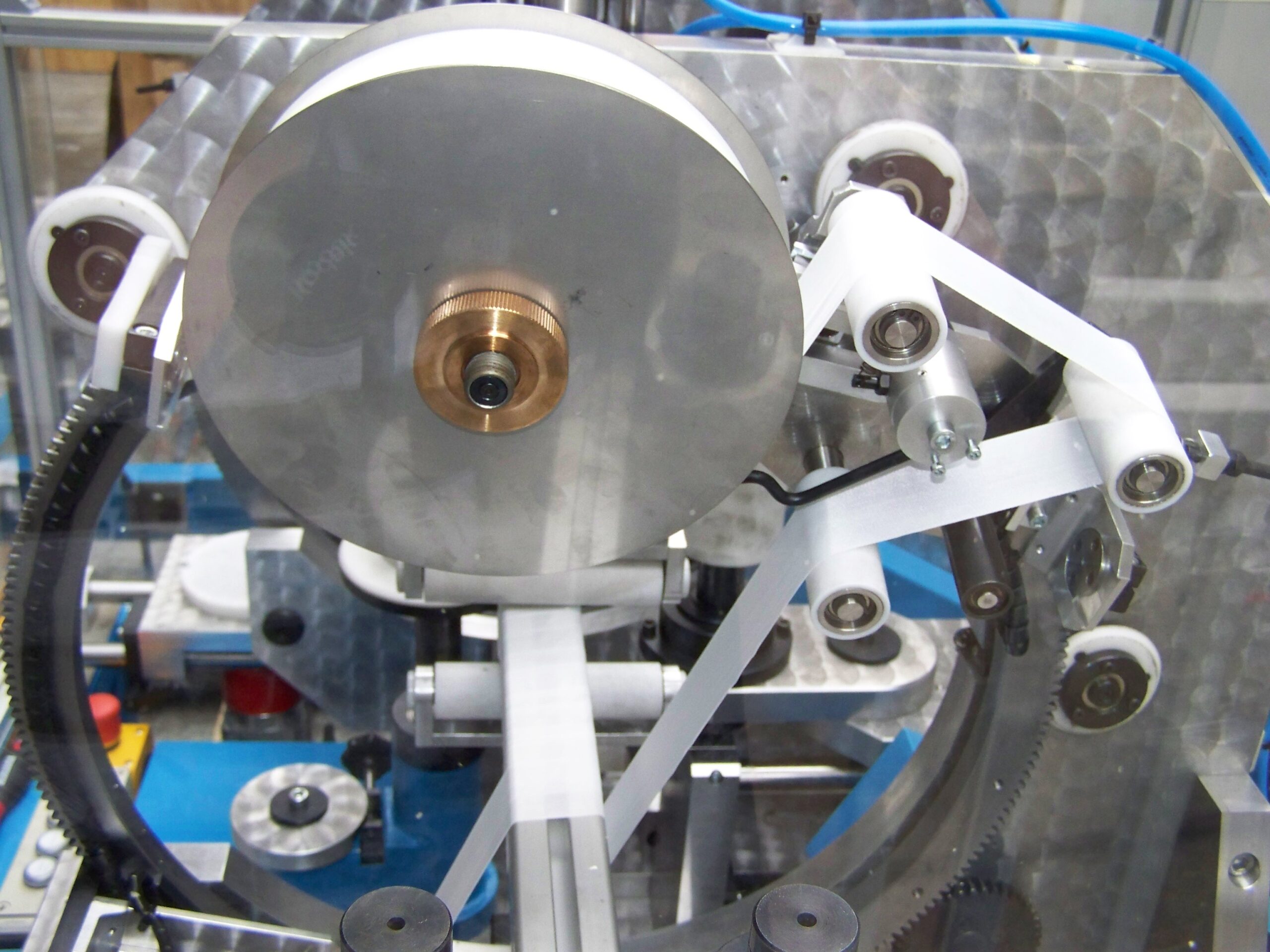 Die TBD 50 ist eine Tandembandagiermaschine, auf der sowohl Rohre, Stäbe als auch Seile mit verschiedenen Querschnitten bandagiert werden können. Das Wickelprinzip dieser Maschine ist: 2 Bandköpfe mit jeweils 2 Bandabrollsystemen. Der Bandagiervorgang kann entweder mit einem oder gleichzeitig mit zwei Bandköpfen erfolgen. Zusätzlich ist das Bandagieren mit einer bzw. zwei Vorratsrollen pro Bandkopf gleichzeitig möglich. Der Bandvorschub erfolgt stufenlos. Der Körperandruck wird pneumatisch mit drei Zustellschlitten realisiert. Durch die elektronische Drehzahlregelung kann die stufenlos einstellbare Bandagiergeschwindigkeit den Arbeitsbedingungen optimal angepasst werden. Die Steuerung des Bandkopfes erfolgt über eine SPS mit Servomotor-Controller. Um eine vereinfachte und übersichtlichere Bedienung der Programmierung zu erreichen, ist das Steuerpult mit einem Touchscreen-Display ausgestattet.
