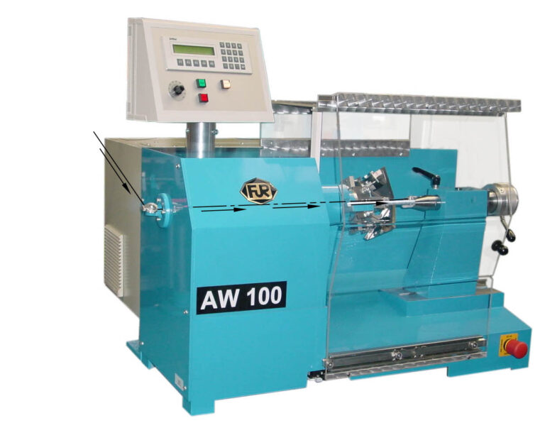 Die AW 100 ist eine schnelllaufende Universalmaschine in moderner Bauart für Drähte bis 1,2 mm Durchmesser. Durch reichhaltiges Zubehör ist sie sowohl für die rationelle Kleinserienfertigung als auch für die Reparatur von Kleinmotoren geeignet. Sie ist einfach zu bedienen und kann ohne großen Aufwand umgerüstet werden. Die elektronische Drehzahlregulierung erlaubt die optimale Anpassung der Geschwindigkeit an den Drahtdurchmesser und die Arbeitsbedingungen.