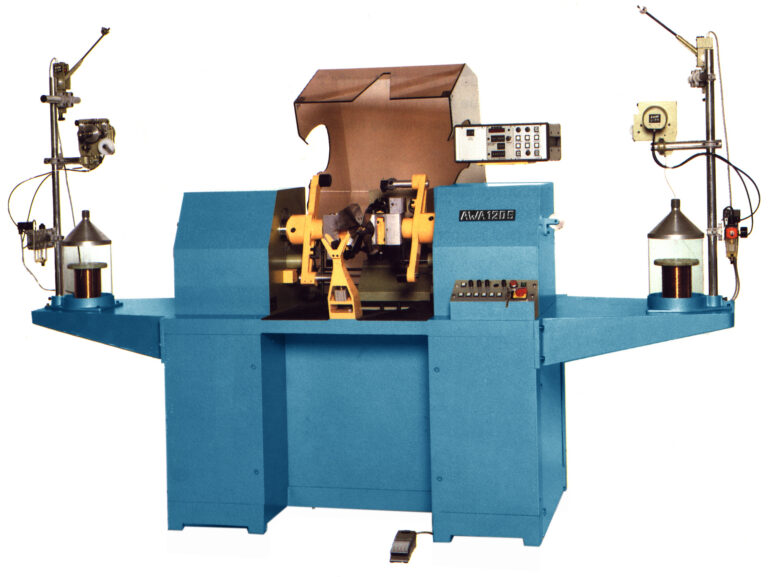 Der verbesserte Ankerwickel-Automat AWA 120 dient zum automatischen Bewickeln von Ankern mit geraden oder schrägen Nuten und gerader Nutenzahl in einer H-Wicklung sowie außenliegenden Wicklungsschlaufen zur besseren Erkennung der Wicklungszugehörigkeit.