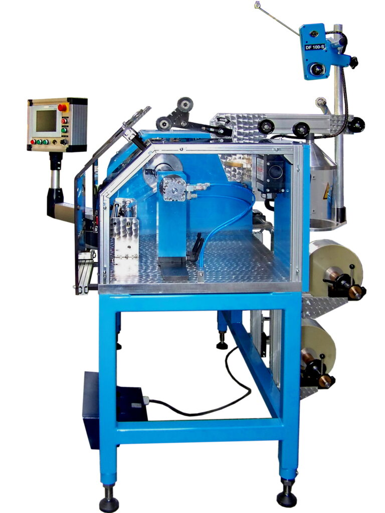 Die WF 40 ist als Lagenwickelmaschine mit einem doppeltem Folienablauf und einem integriertem Drahtablauf ausgestattet.